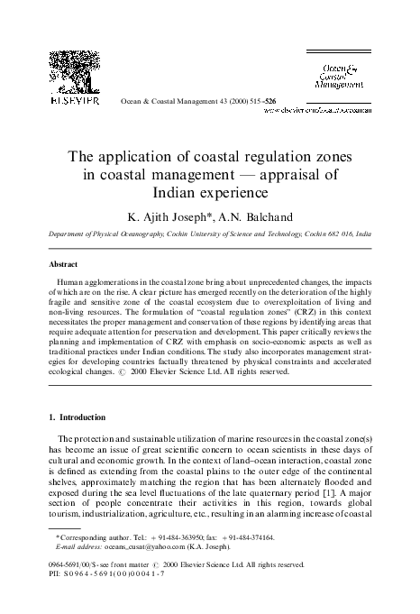 Coastal Regulation Zone Diagram : A trend diagram illustrates in graphical manner the community's perception of how the condition of their coastal area.