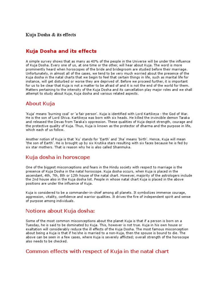 Kuja Dosha : Kuja doshada parihara madikolluvudu hege?