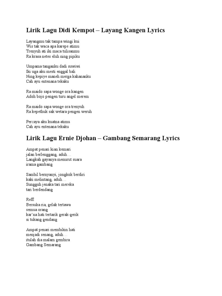 Lirik Lagu Layang Kangen : C f ra maido sapa wong sing ora kangen.