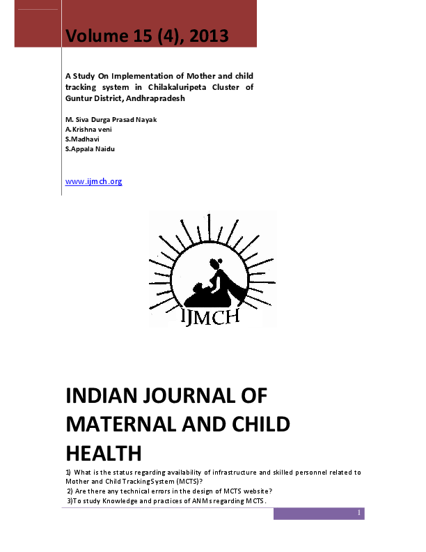 A Study On Implementation Of Mother And Child Tracking System In Chilakaluripeta Cluster Of Guntur District Andhrapradesh Indian Journal Of Maternal And Child Health Siva Nayak Academia Edu The id number would be generated by the system and would be available at the time of next updation on the computer system.