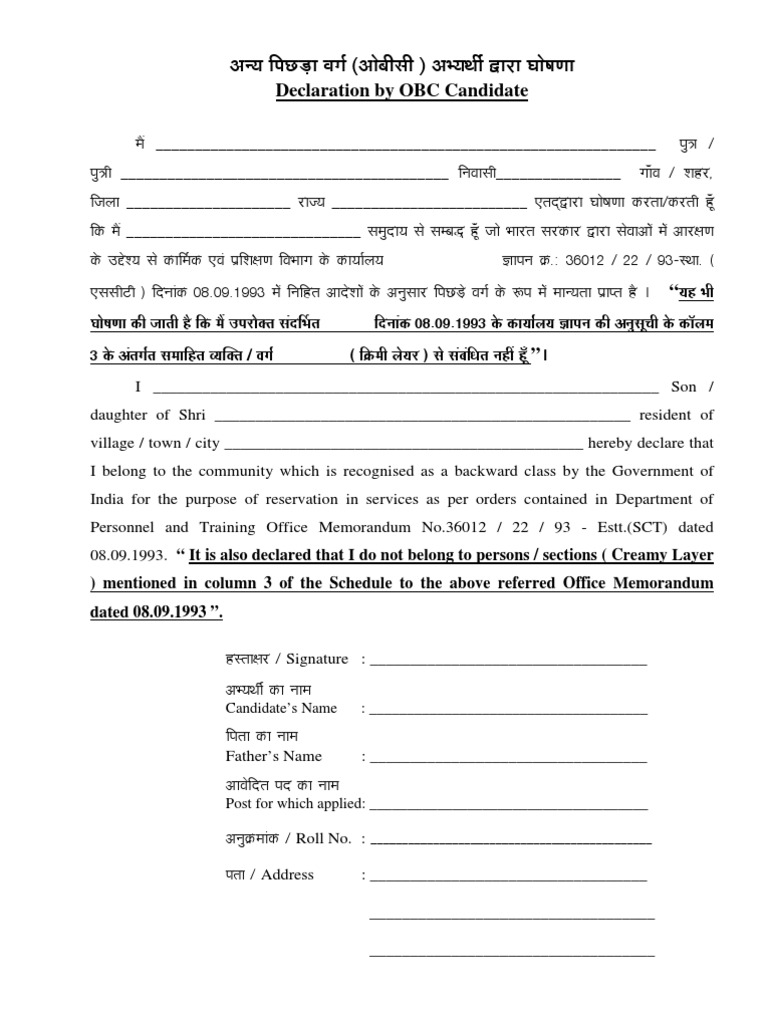 Student Declaration Form In Hindi / Age declaration voter id nvsp.